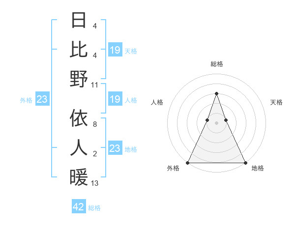 日比野 依人暖さんを姓名の画数から五運を鑑定