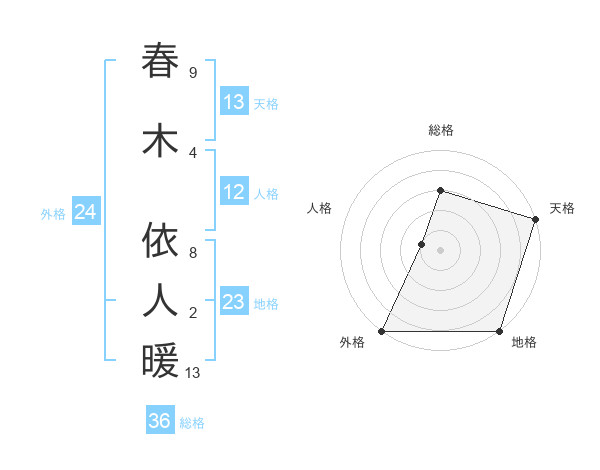 春木 依人暖さんを姓名の画数から五運を鑑定