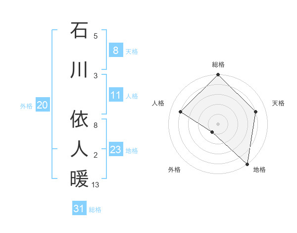 石川 依人暖さんを姓名の画数から五運を鑑定