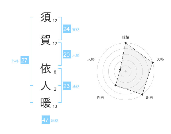 須賀 依人暖さんの総格は47画の5点!