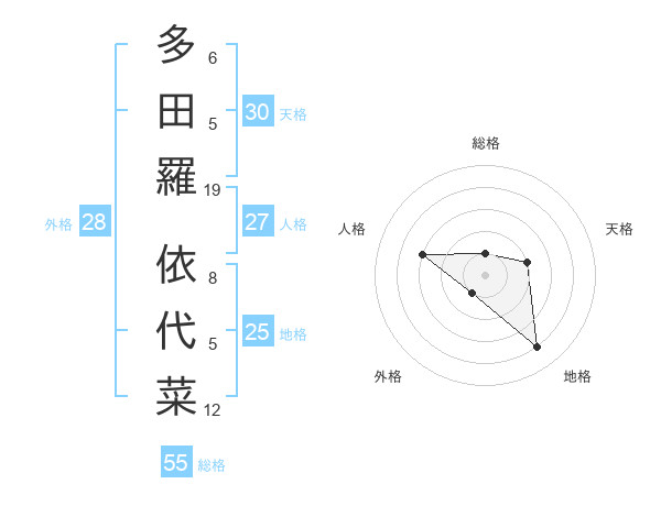 多田羅 依代菜さんを姓名の画数から五運を鑑定