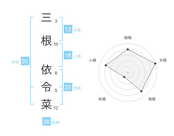 三根 依令菜さんを姓名の画数から五運を鑑定
