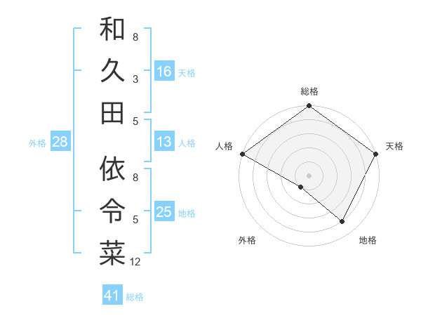 和久田 依令菜さんを姓名の画数から五運を鑑定