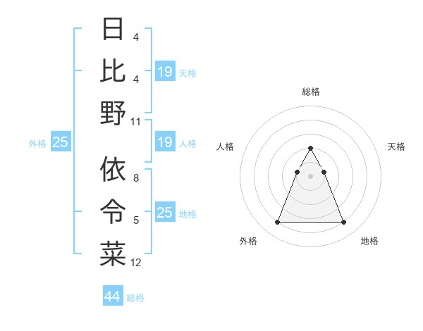 日比野 依令菜さんを姓名の画数から五運を鑑定