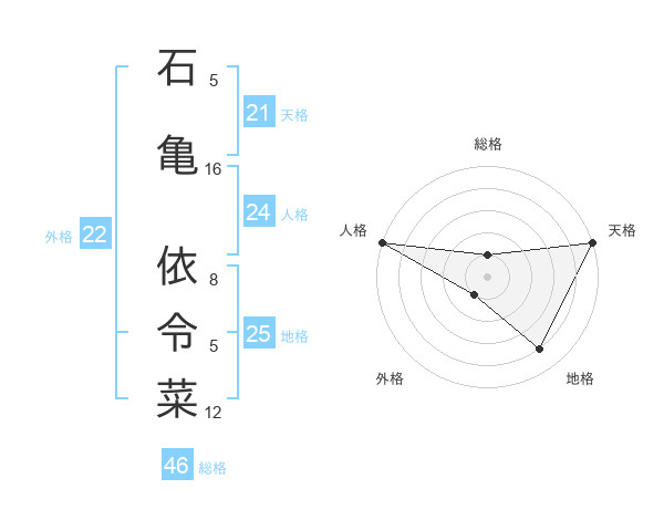 石亀 依令菜さんを姓名の画数から五運を鑑定