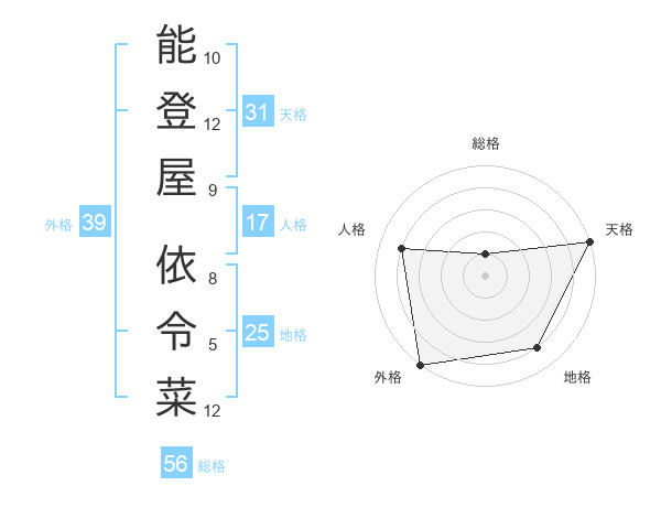 能登屋 依令菜さんを姓名の画数から五運を鑑定