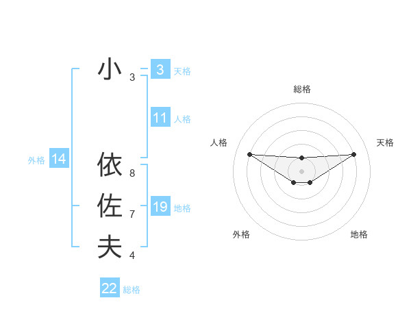 小 依佐夫さんの総格は22画の1点!