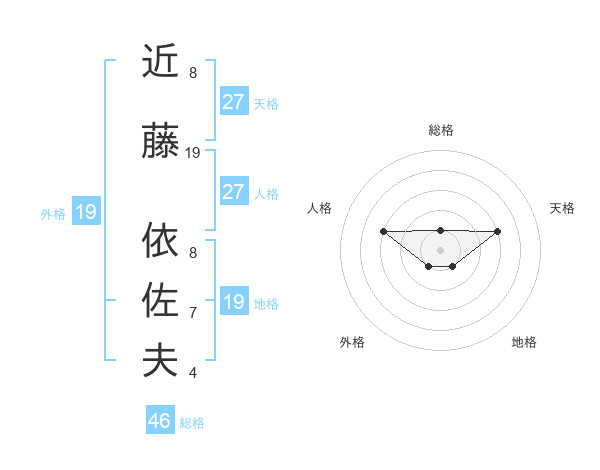 近藤 依佐夫さんを姓名の画数から五運を鑑定