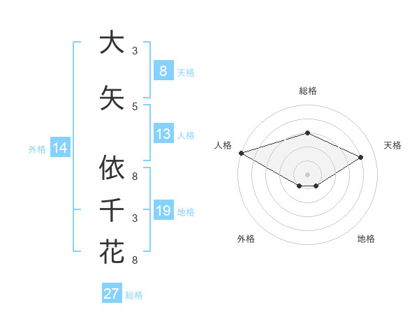 大矢 依千花さんを姓名の画数から五運を鑑定