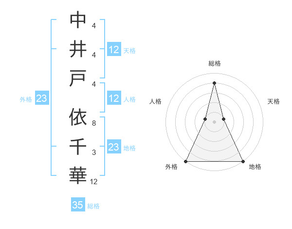 中井戸 依千華さんを姓名の画数から五運を鑑定