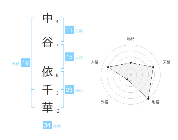 中谷 依千華さんを姓名の画数から五運を鑑定
