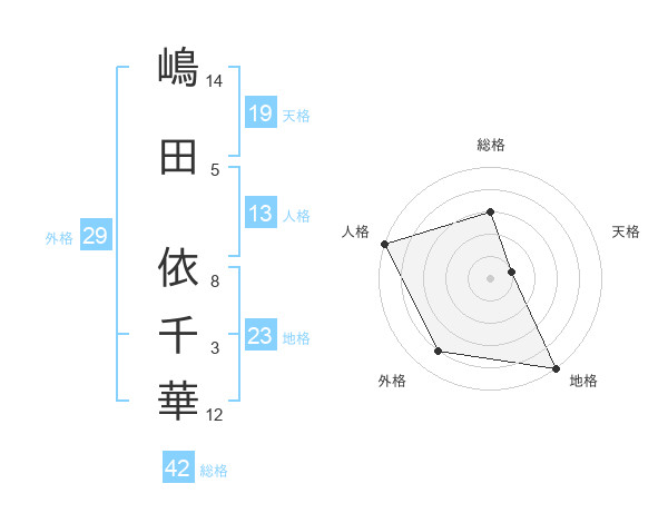 嶋田 依千華さんを姓名の画数から五運を鑑定