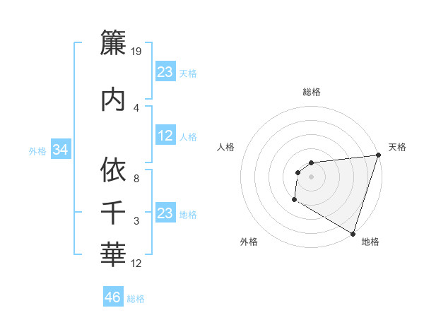 簾内 依千華さんの天格は23画の5点!