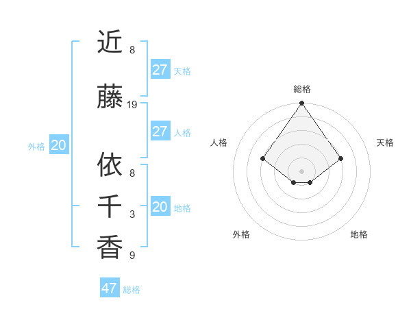 近藤 依千香さんの総格は47画の5点!