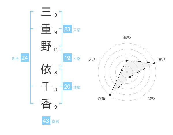 三重野 依千香さんを姓名の画数から五運を鑑定