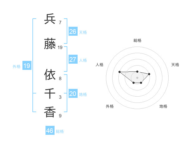 兵藤 依千香さんを姓名の画数から五運を鑑定