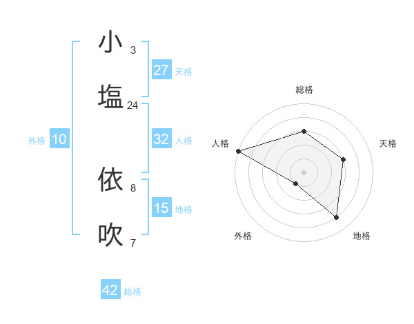 小塩 依吹さんを姓名の画数から五運を鑑定