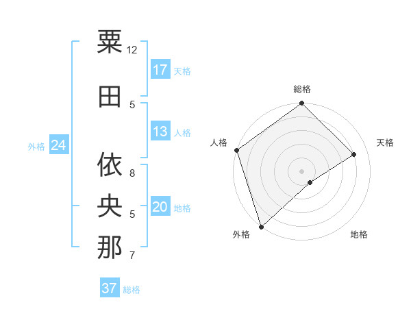 粟田 依央那さんを姓名の画数から五運を鑑定