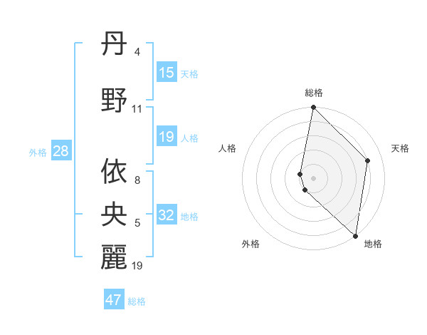 丹野 依央麗さんを姓名の画数から五運を鑑定