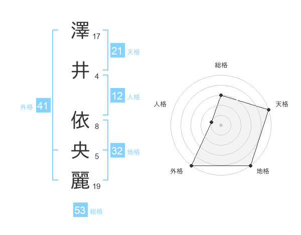 澤井 依央麗さんを姓名の画数から五運を鑑定