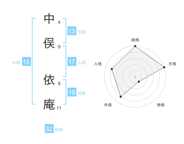 中俣 依庵さんの総格は32画の5点!