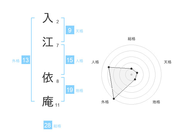 入江 依庵さんの外格は13画の5点!