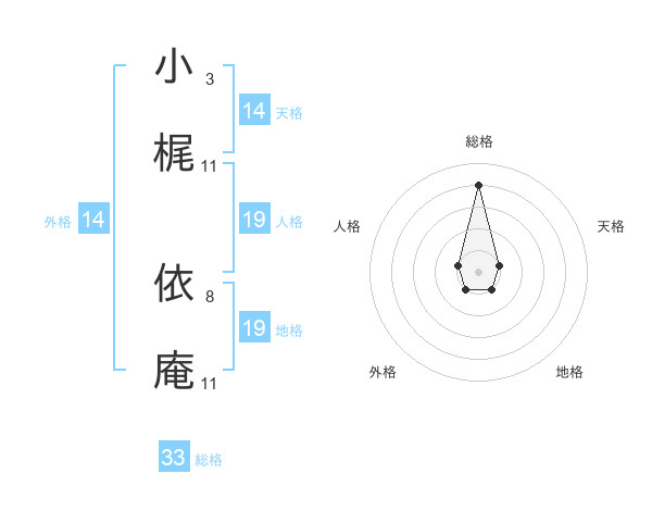 小梶 依庵さんの総格は33画の4点!