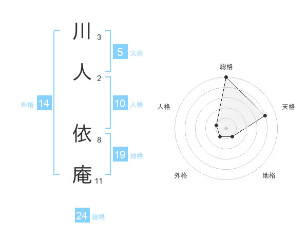 川人 依庵さんの総格は24画の5点!