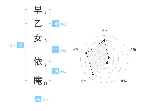 早乙女 依庵さんを姓名の画数から五運を鑑定