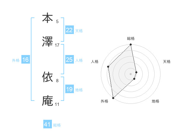 本澤 依庵さんを姓名の画数から五運を鑑定