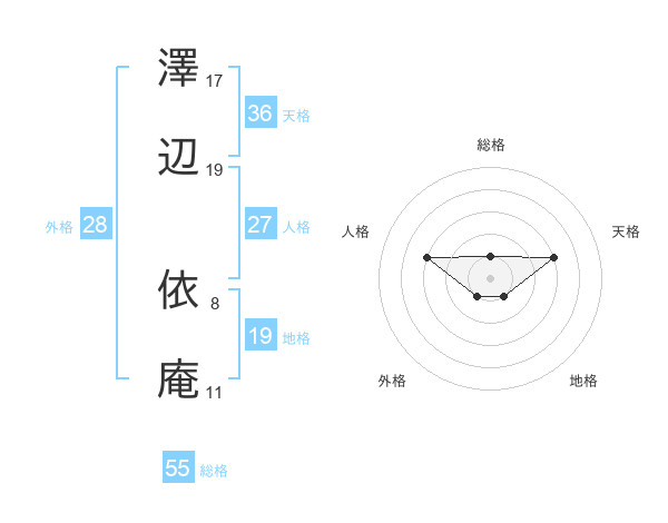 澤辺 依庵さんの総格は55画の1点!