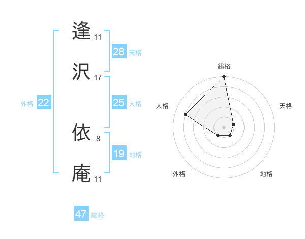 逢沢 依庵さんの総格は47画の5点!