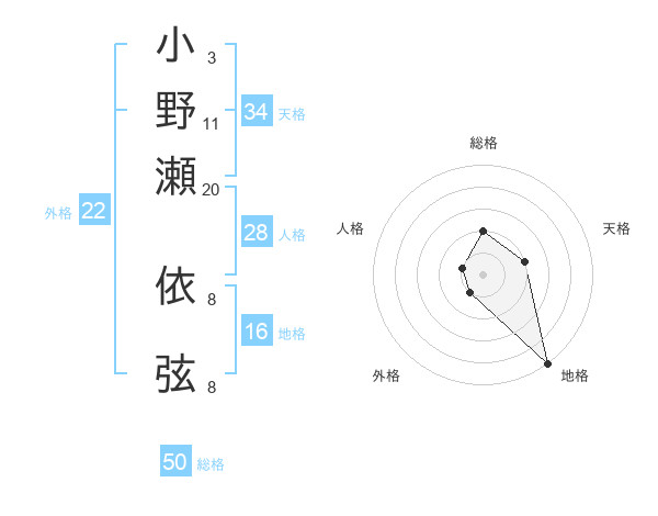 小野瀬 依弦さんを姓名の画数から五運を鑑定