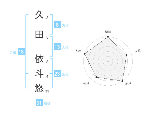 久田 依斗悠さんの総格は31画の5点!