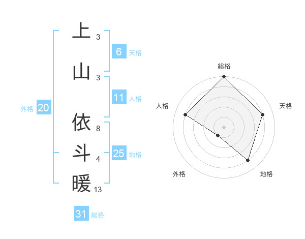 上山 依斗暖さんを姓名の画数から五運を鑑定