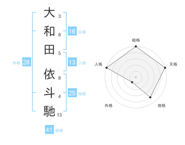 大和田 依斗馳さんを姓名の画数から五運を鑑定