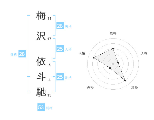 梅沢 依斗馳さんを姓名の画数から五運を鑑定