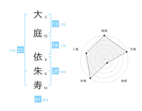 大庭 依朱寿さんを姓名の画数から五運を鑑定