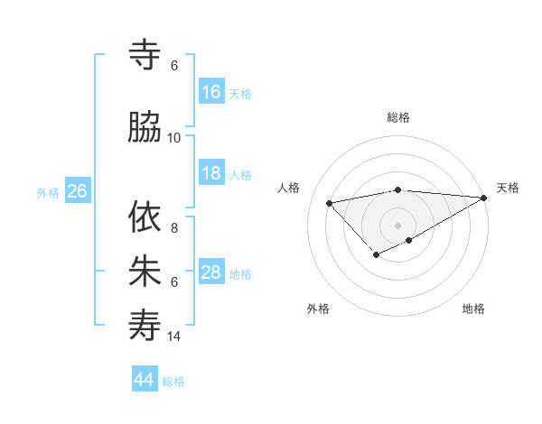 寺脇 依朱寿さんの総格は44画の2点!