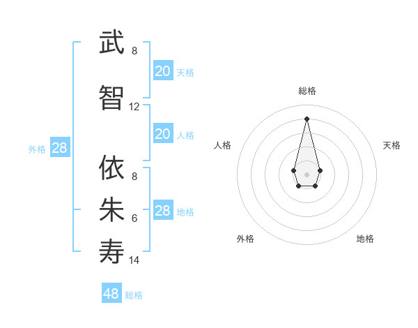 武智 依朱寿さんの総格は48画の4点!