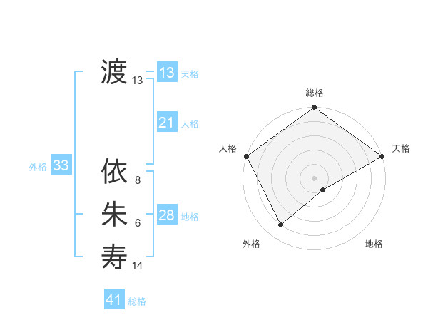 渡 依朱寿さんを姓名の画数から五運を鑑定