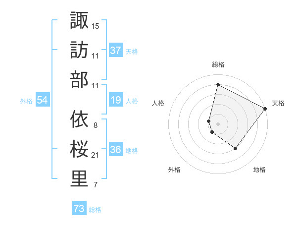諏訪部 依桜里さんの外格は54画の1点!