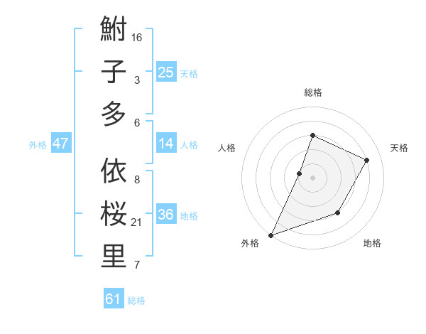 鮒子多 依桜里さんの総格は61画の3点!