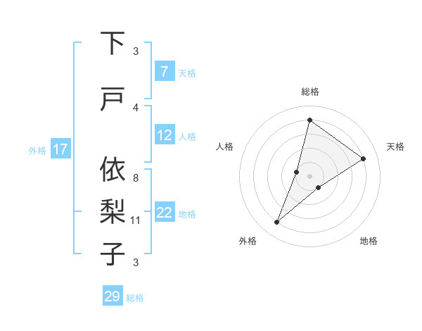 下戸 依梨子さんの総格は29画の4点!