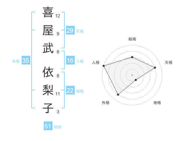 喜屋武 依梨子さんを姓名の画数から五運を鑑定