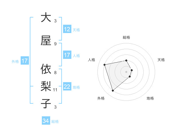 大屋 依梨子さんの総格は34画の2点!