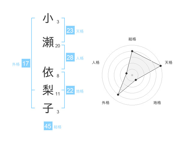 小瀬 依梨子さんの総格は45画の4点!