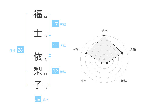 福士 依梨子さんの天格は17画の4点!