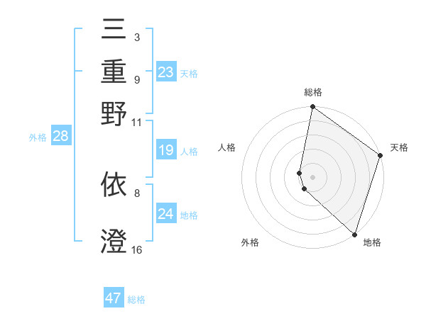 三重野 依澄さんの総格は47画の5点!