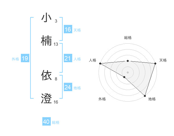 小楠 依澄さんを姓名の画数から五運を鑑定